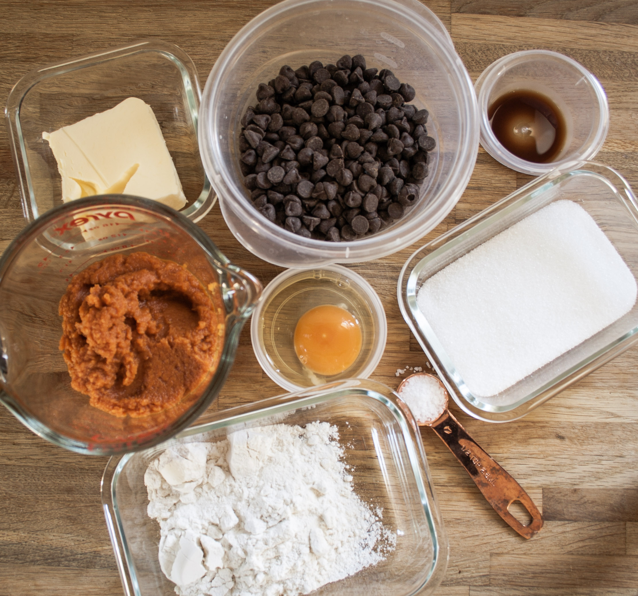 As I have already mentioned, pumpkin is a key ingredient in this recipe. The other is chocolate. I have used semi sweet Hershey chocolate chips. I would stay from using too light of a milk chocolate chip, as it will likely make the pumpkin flavour become noticable.